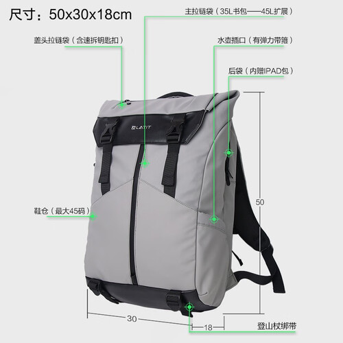 拥有35L大容量,空间充足,可满足你多样化的收纳需求,很是贴心。内置绒布电脑仓,能轻松装下15.6英寸的笔记本电脑。