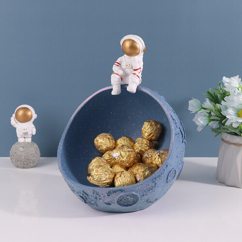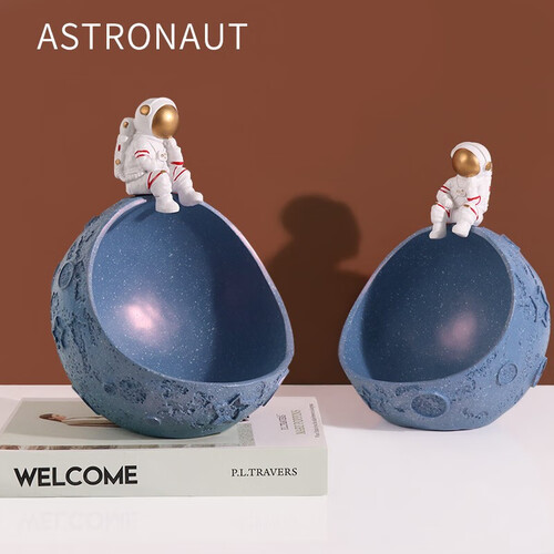 宇航员人偶与月球造型相呼应,仿佛身处太空,给家居装饰增加了趣味。开放式的设计能够收纳更多杂物,放置桌面或玄关都很合适。