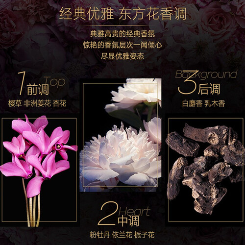 典雅高贵的经典香氛,让人一闻倾心,尽显优雅姿态;蕴含芳香润泽精华,为肌肤深层滋润补水,令肌肤弹润柔滑有光泽。