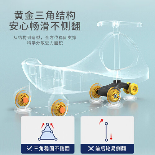 时尚撞色外形设计,出街更吸引人,宝宝更喜欢。玩扭扭车能锻炼孩子的平衡感,还能培养孩子的观察能力。