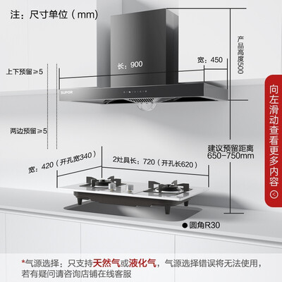 拥有广域拢烟功能,有效防止油烟四溢,还原厨房自然清新空气。燃气灶搭载一体成型不锈钢面板,大气美观,脏污一擦即净。