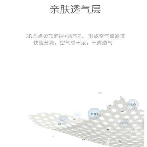 采用3d凸点绒面层设计,温柔呵护娇嫩肌肤,避免红屁股。厚度仅有两毫米的轻薄芯体,带来更多舒适感,让孩子远离闷热和潮湿。