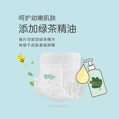 弹柔力腰围,内含弹力莱卡橡皮筋,让宝宝享受服帖的腰围。添加绿茶精油,有助于皮肤基础屏障,贴心呵护宝宝娇嫩肌肤。
