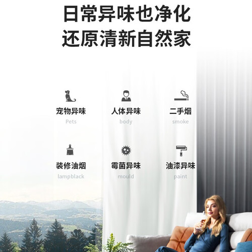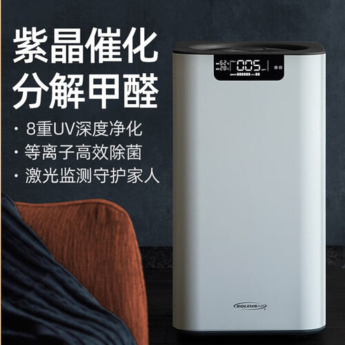采用8重UV光分解甲醛等有害物质,能够将它们分解成无毒无害的分子。采用直流无刷电机,能够快速净化空气。
