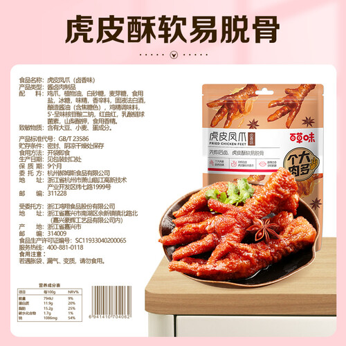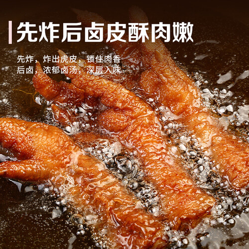 选用了白羽鸡大鸡爪,个头比较大,一个就足以满足你的食欲。高温油炸过后的鸡爪,全身都长满虎皮,卤制后还能一秒脱骨。