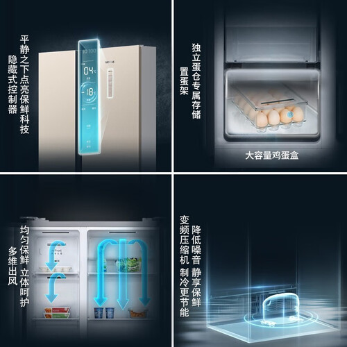 采用瀑布式出风设计,打造温度均匀分布效果,冷风下沉,制冷不结霜。内置变频压缩机,帮助减少运行噪音的同时,节能省电。