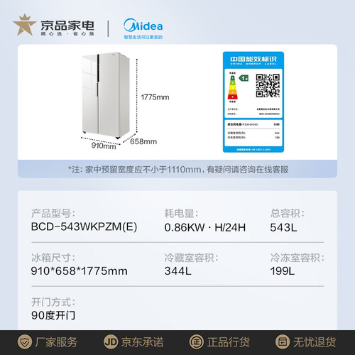 美的 净味 对开门冰箱