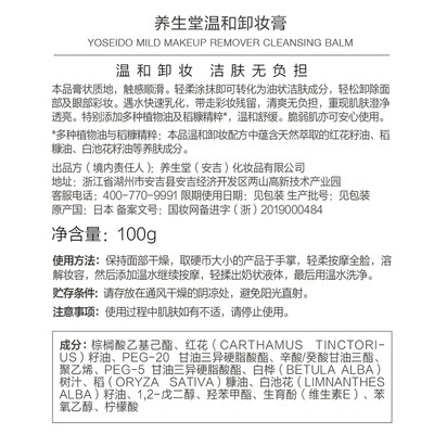 温和水润养肤卸妆膏,能够滋养细腻肌肤,无有害添加,成分温和,质地清爽不油腻,温和滋润肌肤,敏感肌适用。