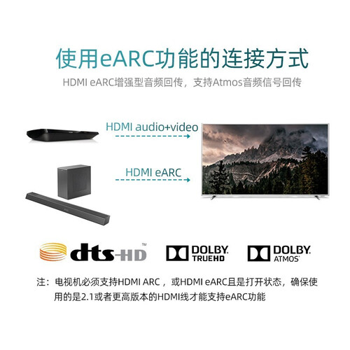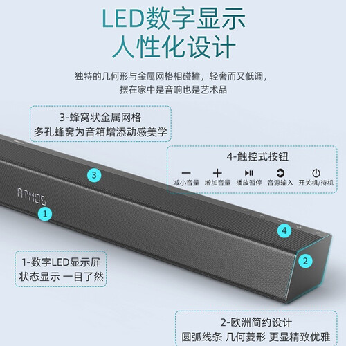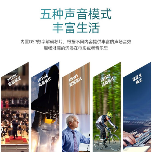 内置8个扬声器单元,4个前置,2个中置,2个天空声道,能够营造更清晰的环绕音质。采用360W大功率,实现震撼音效。