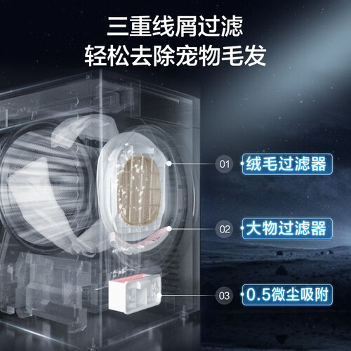 采用变频热泵柔烘,衣物不变形更蓬松,轻松穿上舒适衣物。内置三重过滤,可以有效去除宠物毛发,让衣物更加干净,避免毛发粘连。