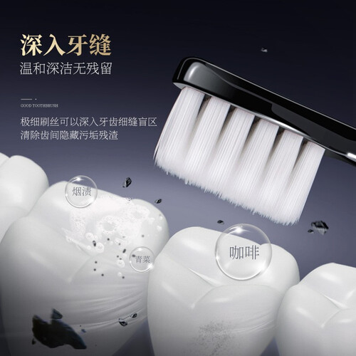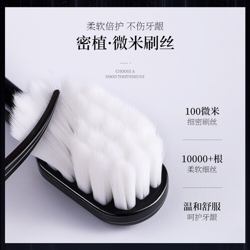 高密度植入微米刷毛,深入清洁牙缝,清扫隐藏污垢残渣。刷毛柔软触感舒适,减少牙龈出血,改善刷牙出血现象。