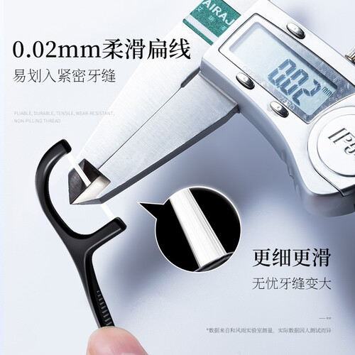牙线添加氟化钠成分,有预防龋齿的功效。一体成型扁线设计,更易深入牙缝,快速清洁食物残渣,长期使用不扩大牙缝。