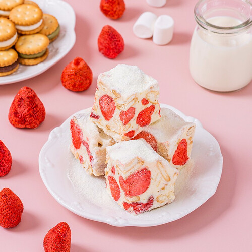 棉花糖可以直接食用,同时零脂肪添加,好吃无负担。可以制作牛轧糖、棉花糖饮品、雪花酥等等甜品,用处多样。