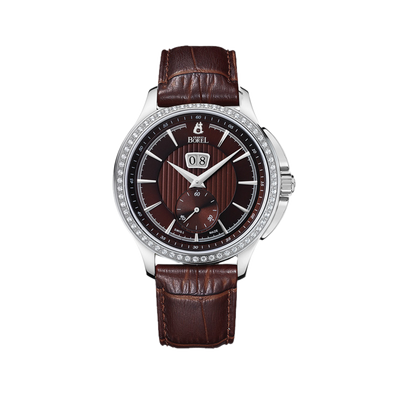 表圈经过镶钻工艺,展现与众不同的格调,成为整体的画龙点睛之笔。大日历的窗口设计,可随时了解当前的日期。