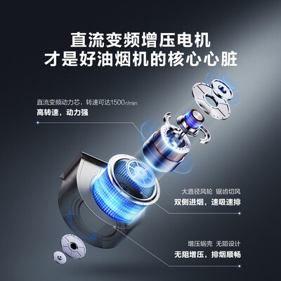 采用直流变频风机,随时监测公共烟道油烟压力调节风速,让排烟更顺畅不倒灌。具有强劲飓吸爆炒浓烟功能,迅猛吸走呛鼻浓烟。