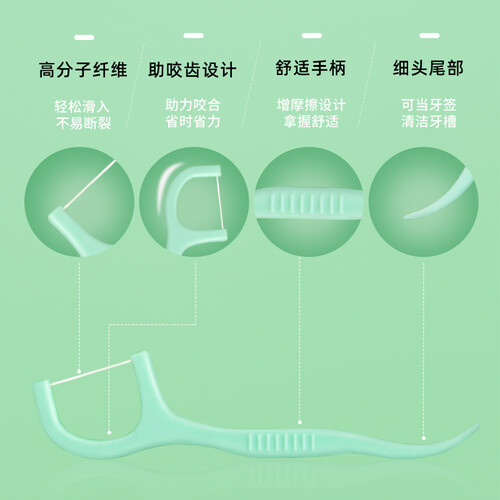 深入口腔清洁污垢残渣,改善口腔烦恼;选用高分子聚乙烯材料,不易断裂,不扩张牙缝;进线咬合设计,助力轻松进线。