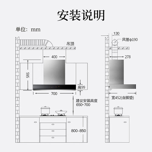 700mm机身尺寸,不会占用过多空间,可以在狭窄户型中安装使用。特氟龙喷涂蜗壳,具备良好的耐腐蚀能力,不会沾染油污。
