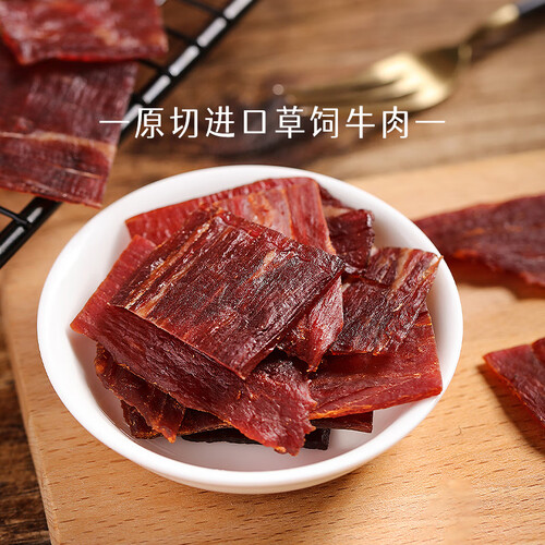 采用进口草饲牛肉,纹理层次分明,还带有浓郁的香气。低温慢烤的加工方式,能锁住牛肉的鲜味,色泽诱人,口感更美味。