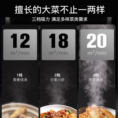 拥有3挡吸力可调节,满足中式烹饪不同菜品的需求。可实现420pa大静压,畅通的烟道无惧堵烟现象,厨房空气更清新。