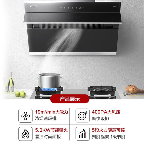 智能挥手操控,减少面板接触,保持干净不油腻。甄选密封全铜电机,拥有强劲动力,运行效率更高,快速吸净油烟。
