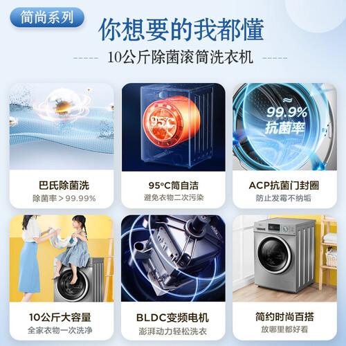 95℃高温筒自洁,能够营造一个洁净的洗涤环境,避免二次污染。采用BLDC变频电机,降低运行噪音,不打扰休息。