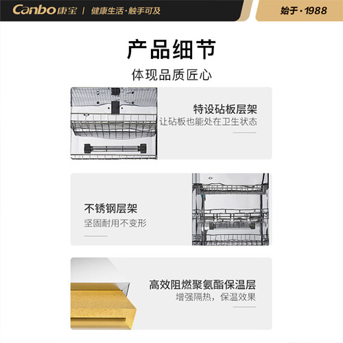 下层采用高温清洁技术,循环风力能快速深入缝隙,保证餐具干燥无水渍。300L大容量,各种餐具都能轻松收纳,有序摆放易取放。