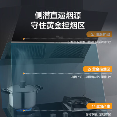 侧潜式设计,在油烟没有升到高处时就及时吸走,防止油烟扩散。采用聚能架,受热更均匀,减少安全隐患,老人也能放心使用。
