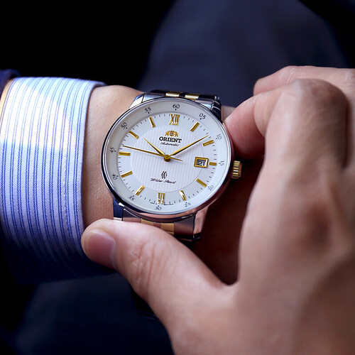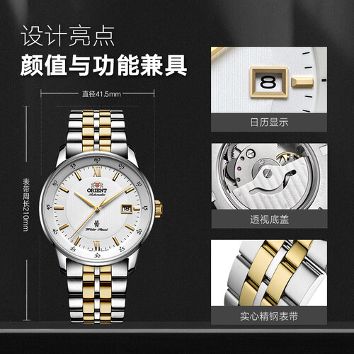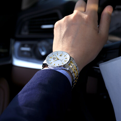 儒雅的金色指针,辅以立体切面字钉,呈现出儒雅时尚的质感,深受商务精英的喜爱。支持10巴防水,日常洗手洗脸也无需摘下。