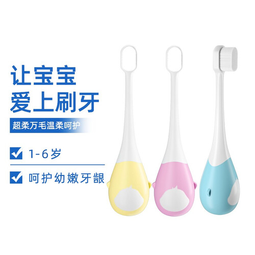 由一万根绒感刷丝组成的圆弧小巧刷头,能更贴合宝宝萌牙齿面,轻柔倍护。Q萌大肚子外形,更吸引宝宝。同时符合人体工学设计。