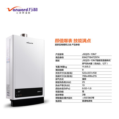 内置无氧铜水箱,导热系数高达400WMK,吸热效果更好,有效节省燃气。出厂均配备防风帽,有效杜绝冷空气倒灌进入热水器。