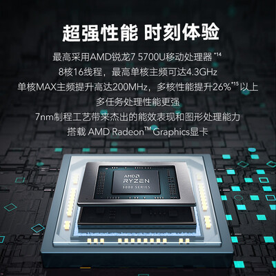 选用AMD锐龙5移动处理器,持续高性能释放,响应快捷灵敏。采用全面屏,搭配窄边框设计,视觉体验沉浸感十足。