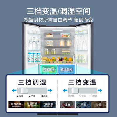 设有独立调温调湿抽屉,温湿可调,满足不同食材储存。支持WiFi智能操控,一键连接APP,远程操控,随时查看状态。