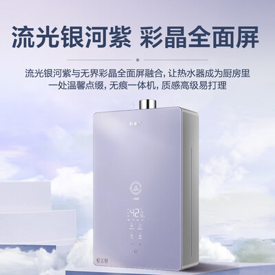 全屋用水水温恒定功能,双恒定水温,全屋多点用水不打扰。晶彩外观设计,无界全面屏触感更加细腻,擦拭易清洁,美观又大气。