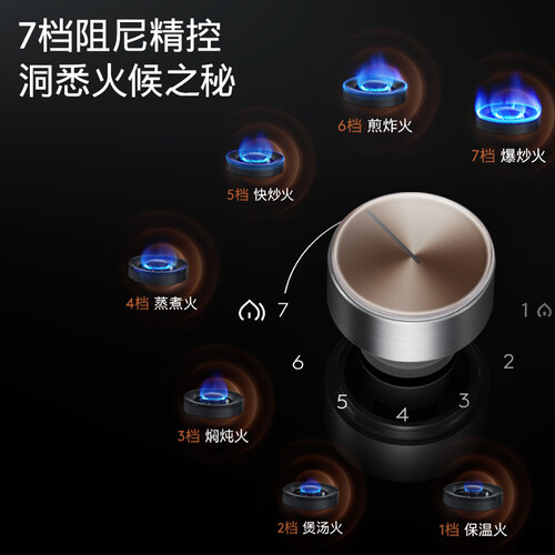 采用7挡阻尼精控设计,灵活调节火力,火力控制更准确,满足多元烹饪需求。多维空气喷嘴,空气预混合,减少燃烧废气。