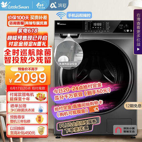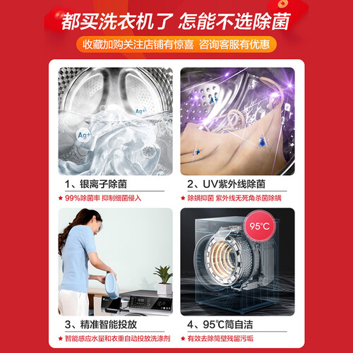 机内采用了活性银离子全时巡航除菌,并且运用紫外线进行二次除菌,可以有效呵护家人健康。10kg的大容量,可以随心进行换洗。