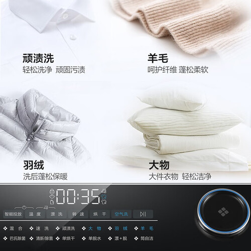 提供15分钟速洗程序,小件衣物随时清洗,快速烘干,无需等待。具备460mm纤薄机身,体积小巧容量大,为小户型节约空间。