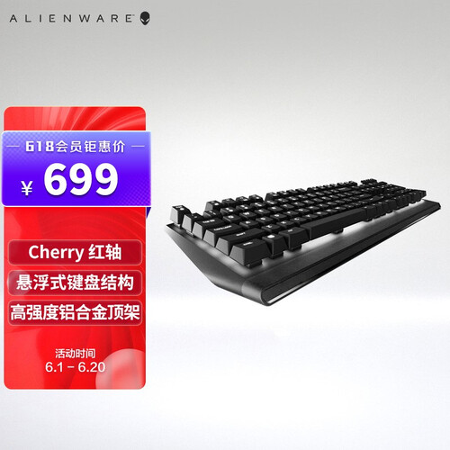 外星人这款键盘内置樱桃红轴轴体,2mm触发键程按键反应灵敏,操作响应速度快,游戏更流畅。