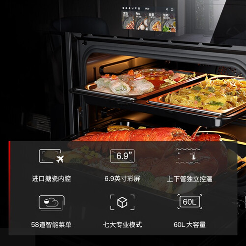 6.8英寸的全触摸彩屏,兼具颜值与实用性,功能清晰,操作方便。采用均匀温控技术,让内腔温度波动控制在±1℃。