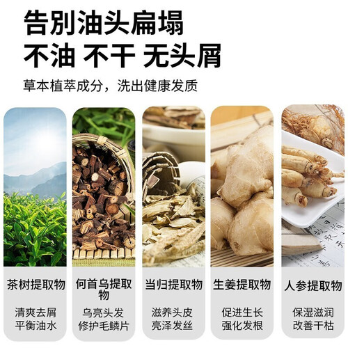 甄选茶树、何首乌、人参等多种植物精华,可为头发毛鳞片补充营养。有效控制头皮的油水平衡,避免头皮屑过多的问题。