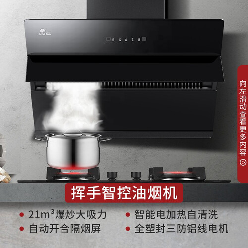 890mm拢烟区域,避免油烟四处升腾,呵护呼吸健康。采用微焰催化燃烧技术,减少附着游离碳,降低废气排放。