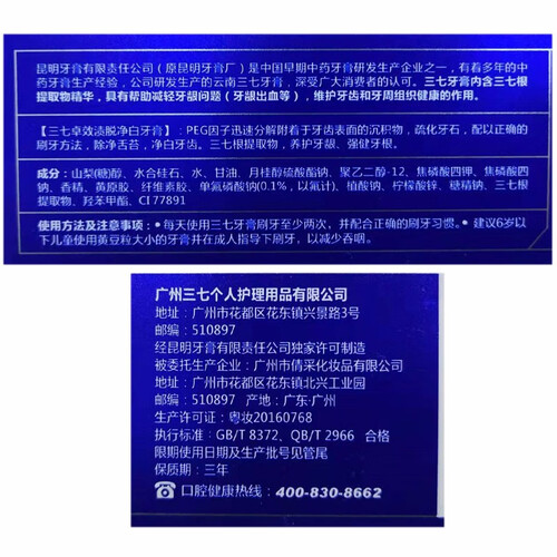含有三七总皂苷,可以分离色素,让你的牙齿恢复本色。同时配合薄荷成分,使用冰凉净爽,保持口气清新,交谈更自信。