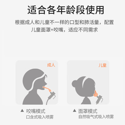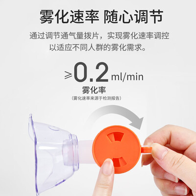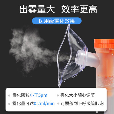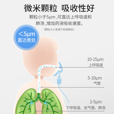 雾化的颗粒直径小于5微米,每分钟2.0毫升的大出雾量,使用效率高。配备不同面罩和咬嘴,成人儿童都可以使用。