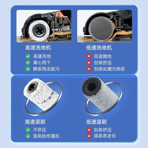 采用吸尘+拖地+洗地为一体的擦地模式,同步进行,省时省力。搭载高速吸湿马达,能够瞬间吸除脏污。 一键自清洁,滚刷免手洗,更省心。