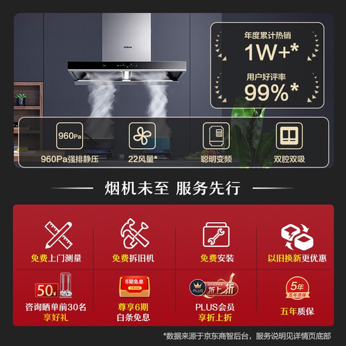960Pa大风压,无惧公共烟道,排烟顺畅不倒灌,放心烹饪。内置变频电机,运行稳定阻力小,告别噪音困扰,安静享受烹饪时光。
