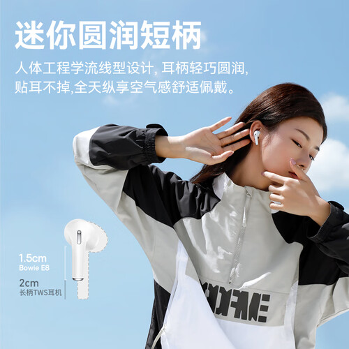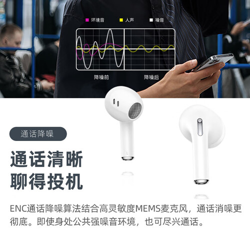 人体工程学的流线造型搭配短柄式侧入耳式设计,外观曲线圆润,拥有空气感的舒适佩戴体验。搭载ENC降噪算法,音质纯净清晰。
