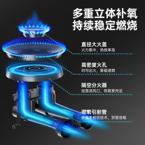 燃气灶经过精心的设计,选用典雅的黑色为主色调,耐脏好打理。特别制作的锅架配件,符合美学概念,兼容各种类型的锅具。