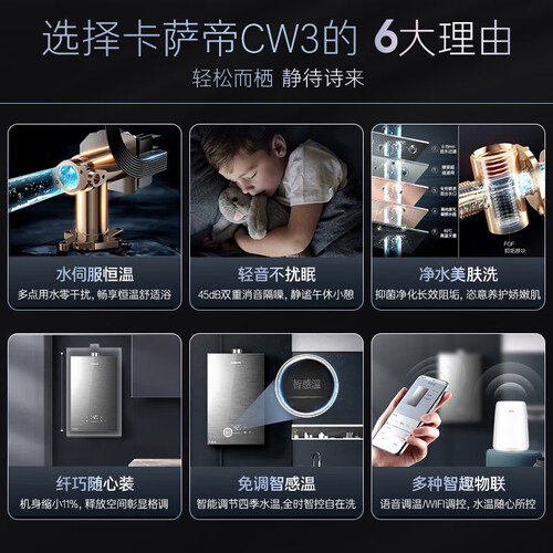 零动恒温,水温无波澜,洗浴更舒适。智能四分段燃烧,合理控制水温,使用更环保节能。科学降噪设计,运行声更小。