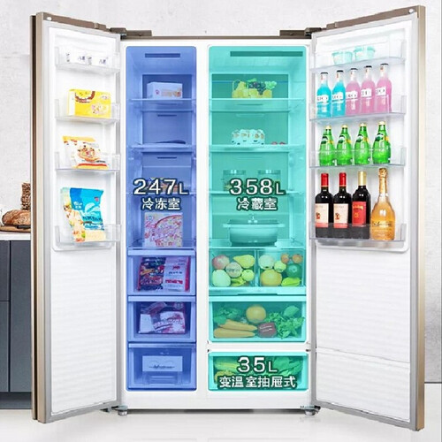 采用604L对开门大容量设计,有效存放大量食材,避免串味烦恼。使用立体多层出风设计,避免食材风干黏连,保鲜效果更出色。