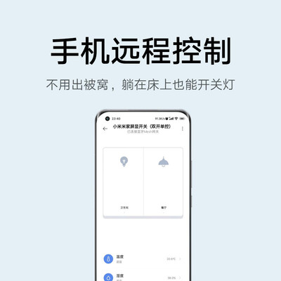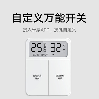 内置温湿度传感器,通过屏幕,让你可以清晰的看到开关所处房间的湿温度。还能连接小爱同时,开关灯一句话就能搞定。
