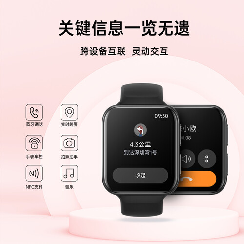 手机来电与信息通知等可以及时推送到手表,轻点接听,抬手查看,轻松与世界保持联系。